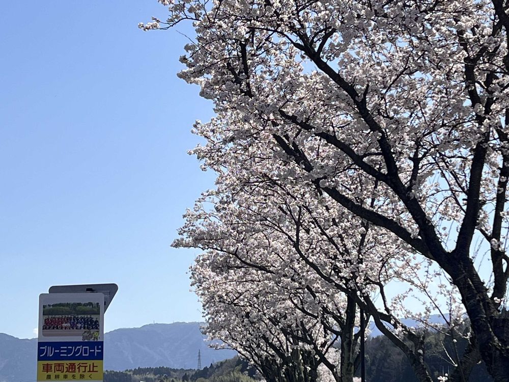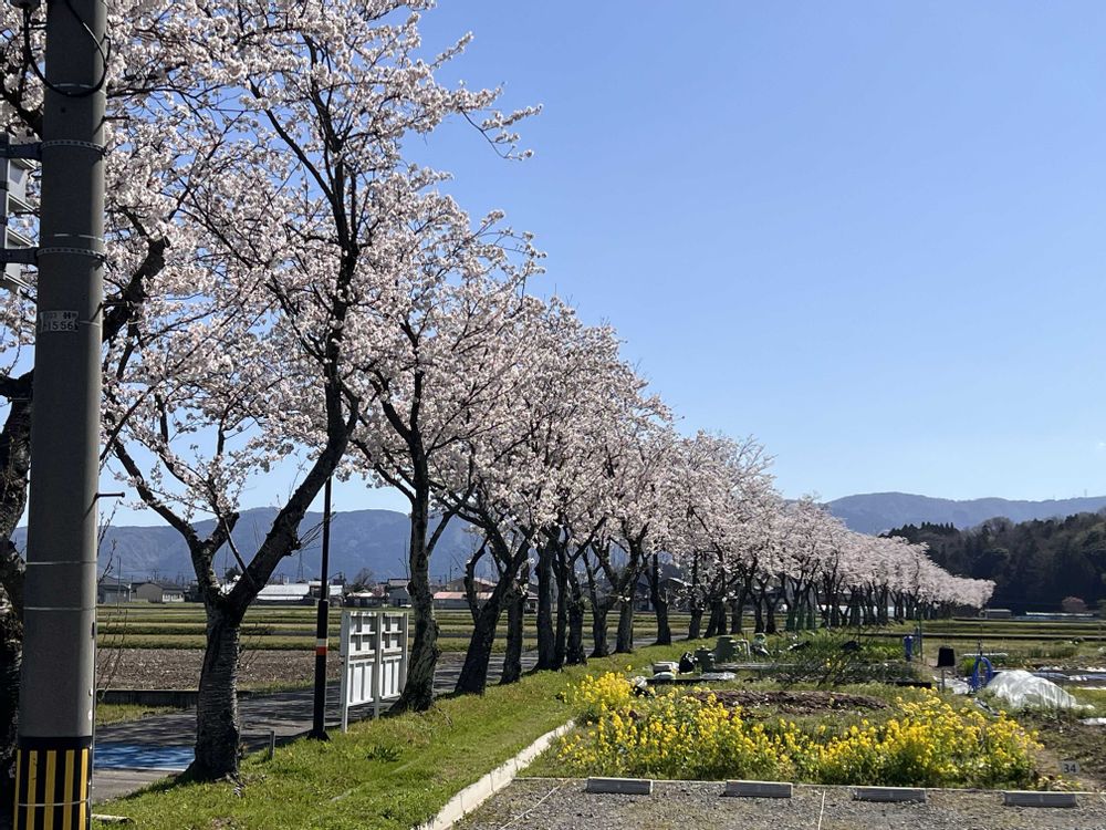 別宅近くに、こんなのどかな桜並木が有りました。傍には、小さな趣味の農園があります。