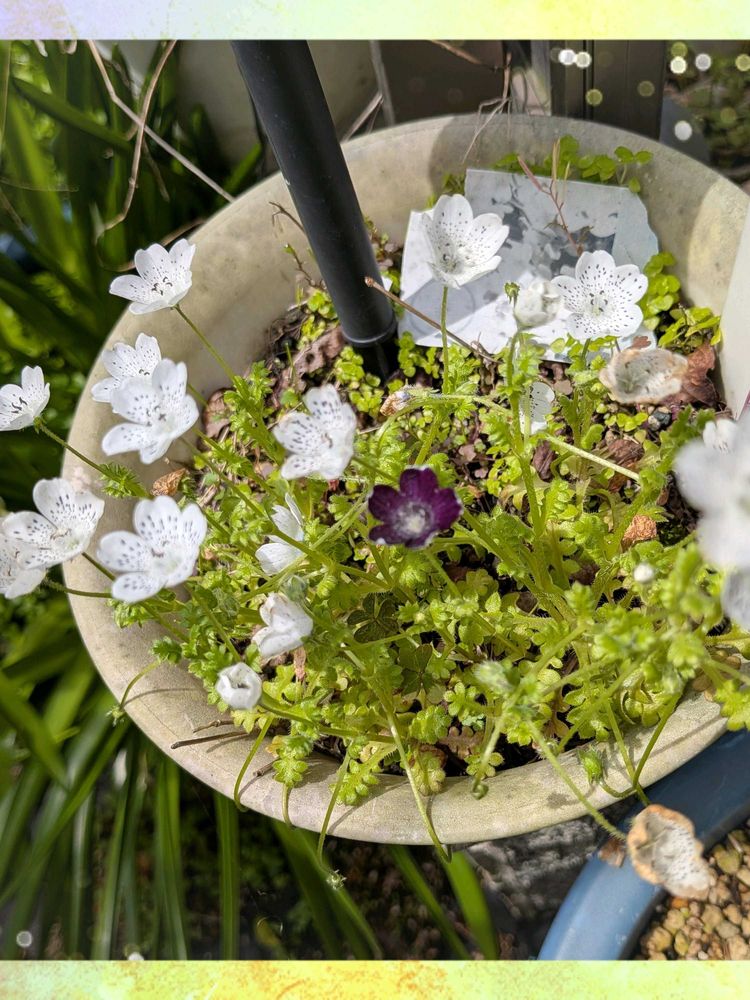 こぼれ種の鉢🤍🤍の中に🖤が一輪咲いています🖤