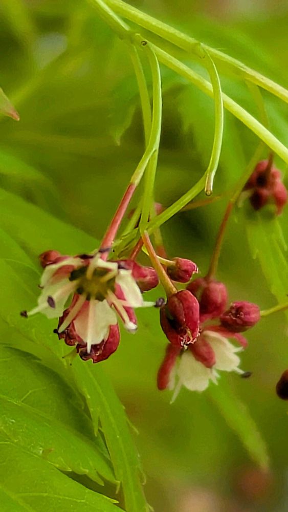 カエデにたくさんの赤い蕾と花が、咲いていました。 寒さも和らぎやっと春花を、あちらこちらで見られる季節になって来たよぅ〜ですぅっ❗️