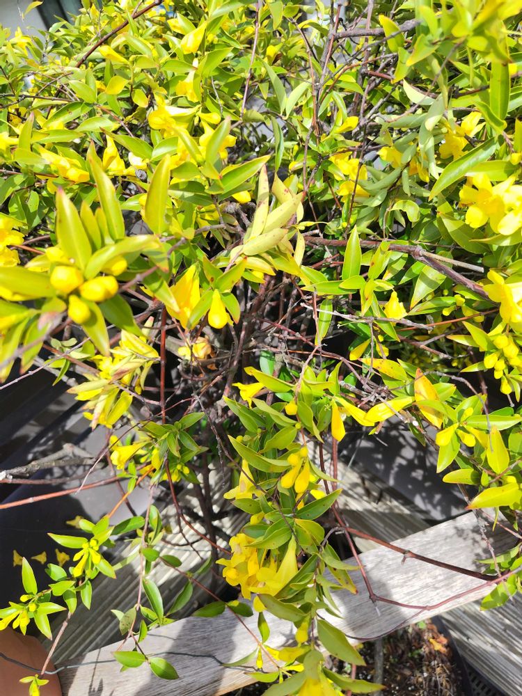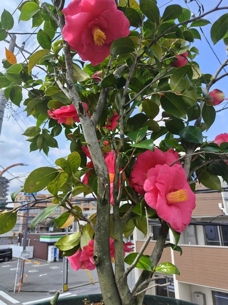 フリージアが開花しました。オダマキ、ヒメウツギは開花目前です。キャロライナジャスミン、ツバキは満開を過ぎ散り始めています。花の命は短いですね~、だから心に響くのですね。
