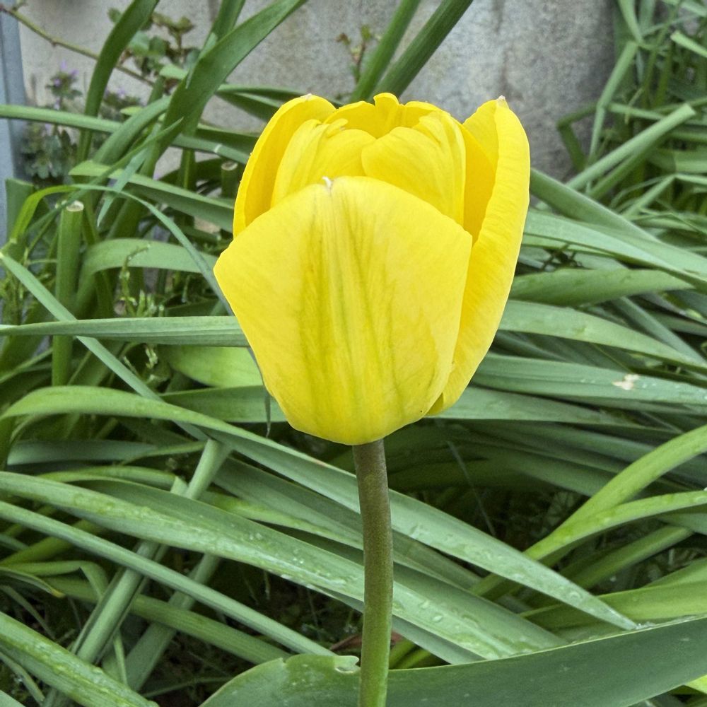 全国一の強風(いや暴風?)が吹いた翌日、今年最初のチューリップ🌷と小花のスイセンが咲きました。