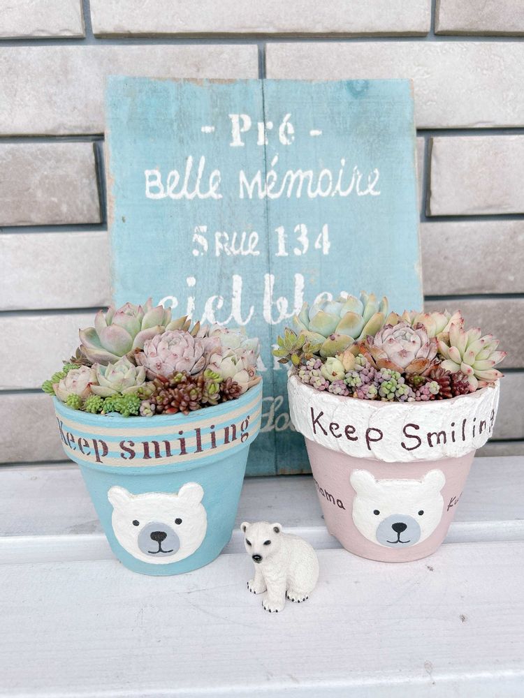 1️⃣自作のシロクマ鉢の寄せ植え