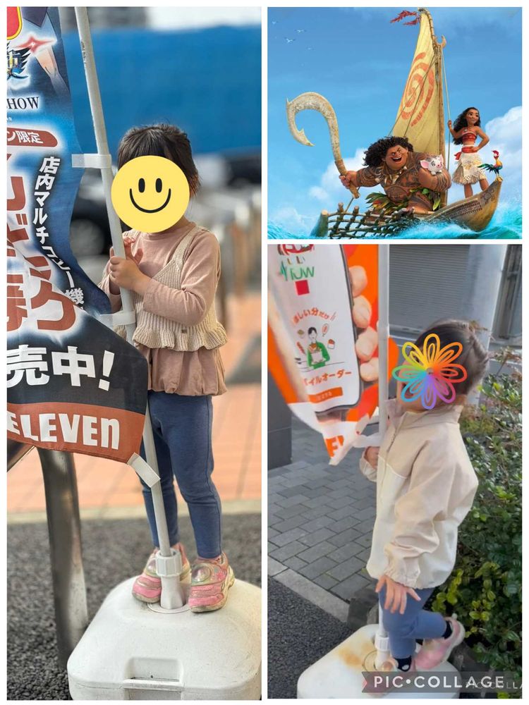 コンビニでのぼり旗見つけると必ず掴まって♪私はモアナ〜🎶って歌ってます😅