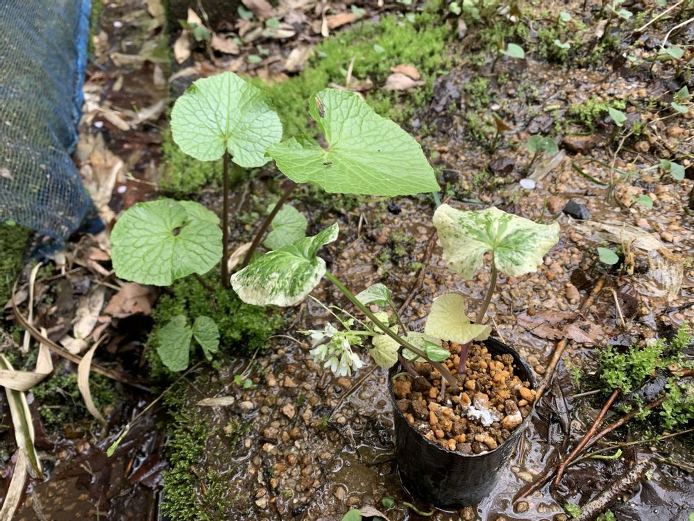 お山のパトロールでキブシがキレイでした😀野生のワサビ😀こちら地方は鹿🦌に食べられて野生ワサビは貴重です😅またまたポチッとな😅斑入りワサビです😊以前消えたと思ってた風蘭棚の向こうに伊豆産ワサビがひとつ残ってました😀さて斑入りワサビはどこに植えましょうかね❓😅枝垂れ桜がやっぱ好き❤️😊