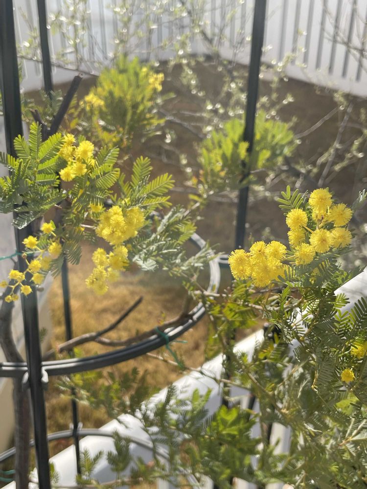枯れた⁈と思った木から新芽が出て、蕾をつけたので、去年はミモザさん頑張りました♪ありがとう◡̈⃝︎⋆︎*今年は地植え?してみる???