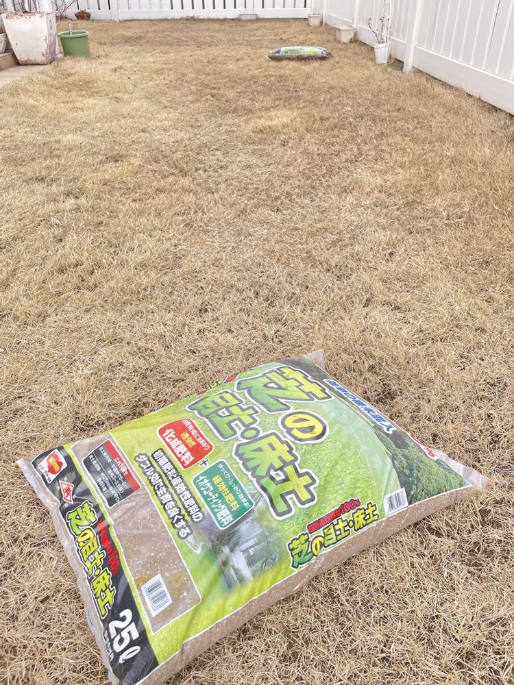 5️⃣昨日、生🍺ビールを3杯呑んだ後に、芝生のサッチングと目土を100L撒きました。😵💫