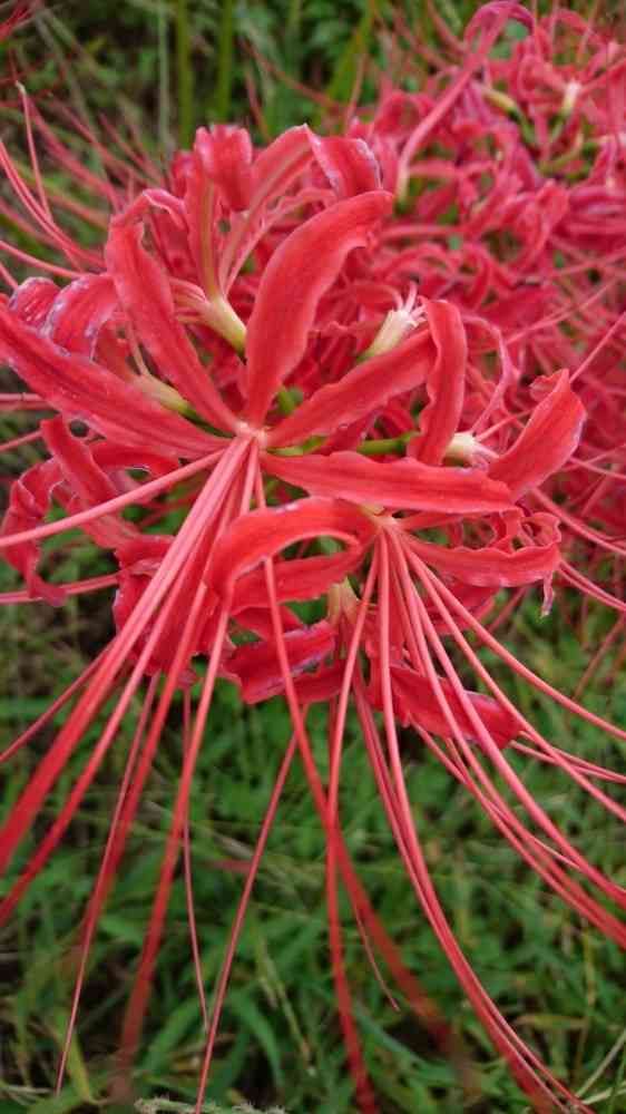 お彼岸のお墓参りに行ってきました。お寺の近くにも赤い曼珠沙華が沢山!!
