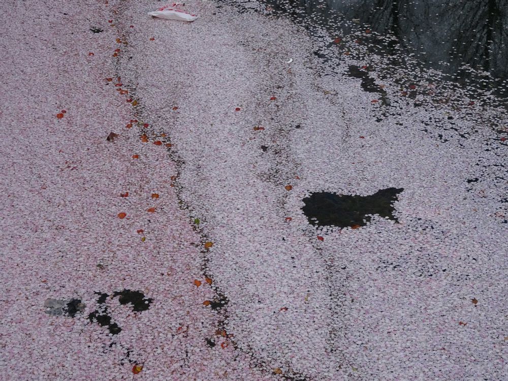 花弁で川面がピンクに┅