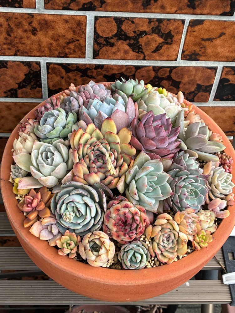中央の6個は名無し苗の格安品だよ🤭後は我が家の育成トレーからチョンチョン✂️小さい鉢の寄植えも可愛いけどそれなりの大きさの鉢は見応えあるよね🙌