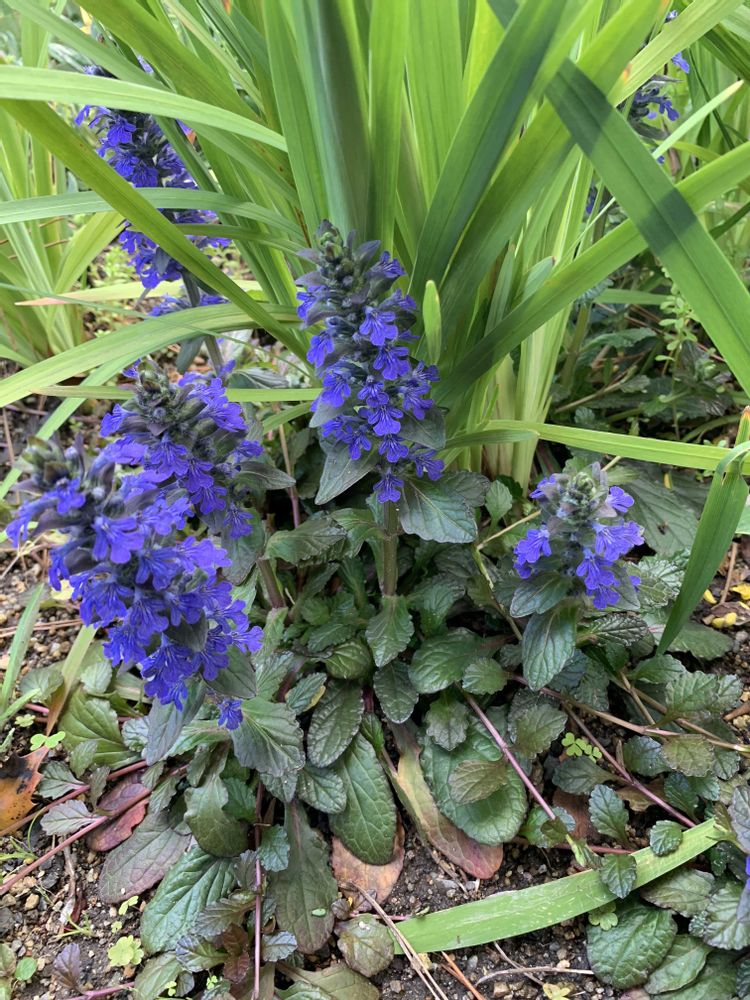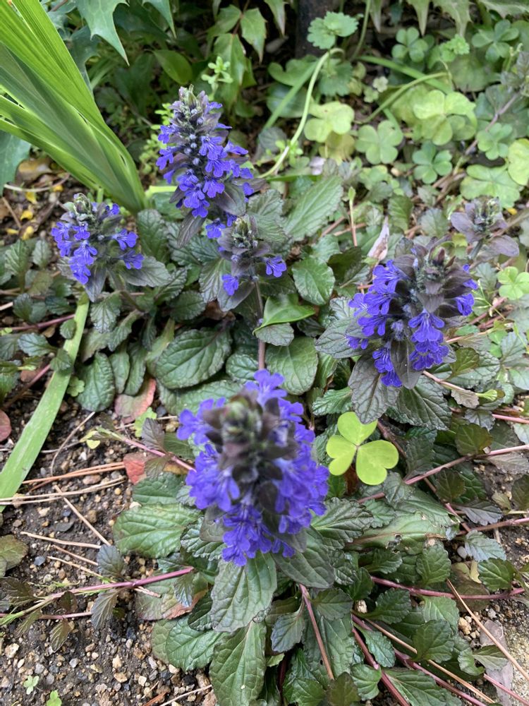 地植えのアジュガが咲いています…