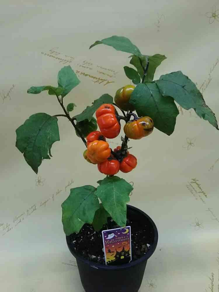 ぴったりの植物をご紹介します🎃ソラナムの仲間で名前はパンプキン🎃今週入荷予定🎵