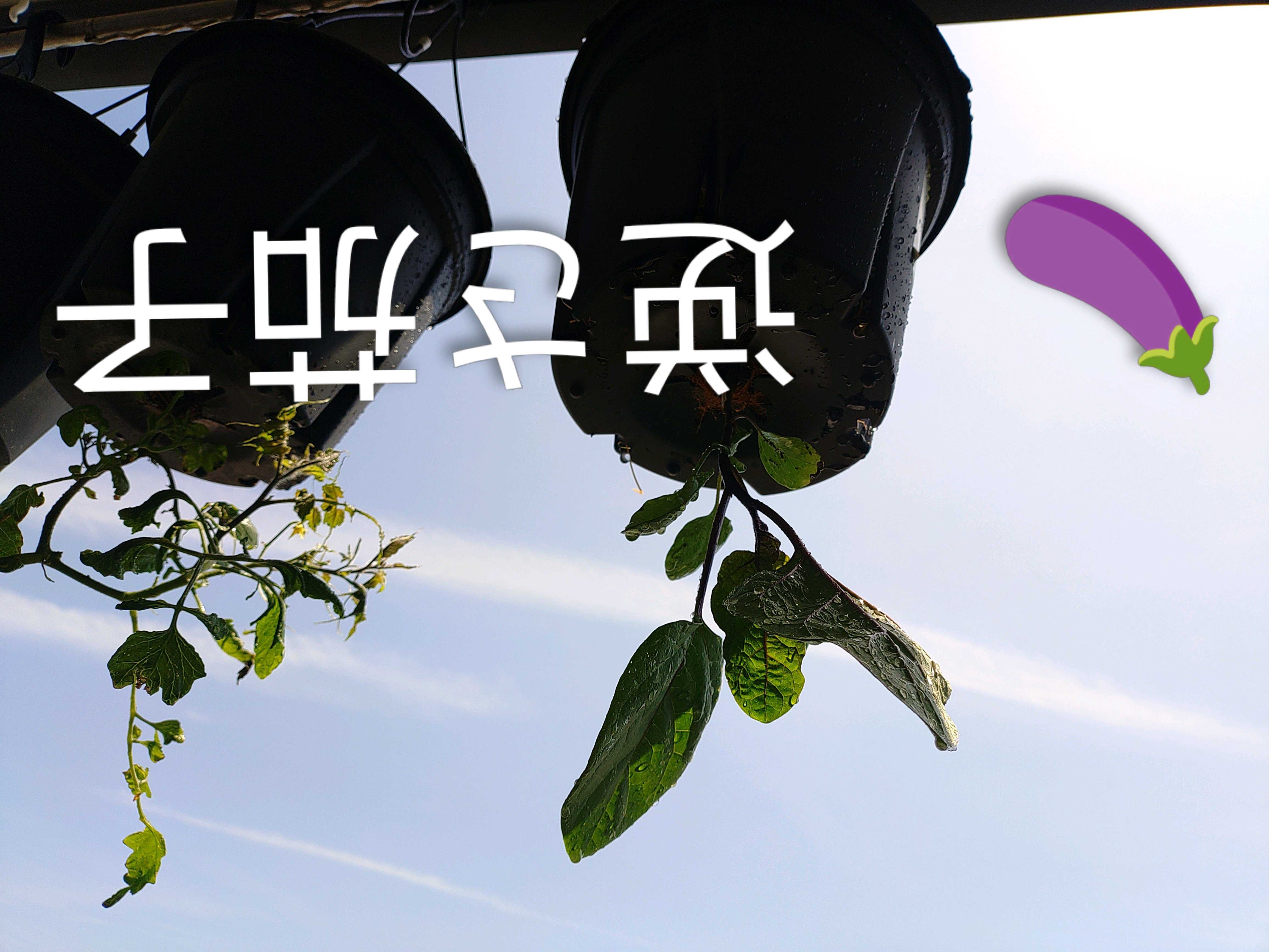 逆さトマトに次いで 逆さナス栽培をやって見た。