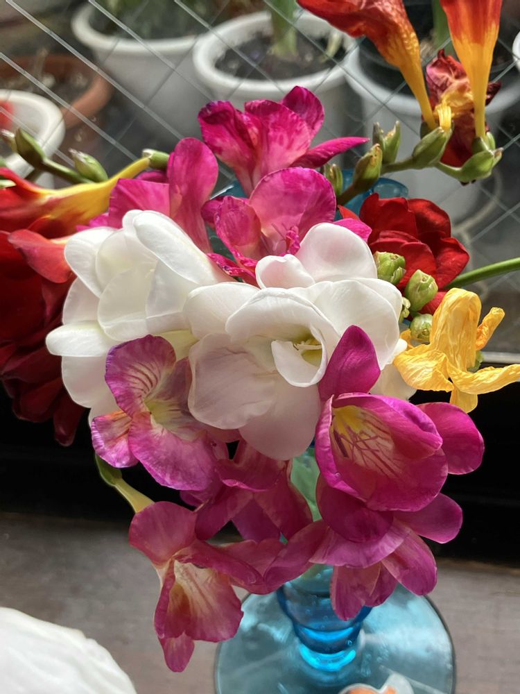 色とりどりのフリージアが部屋の中で香ってるなんて羨ましいですね💕
