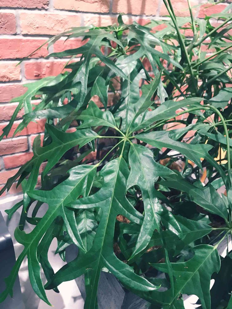 新宿駅内のお店が並ぶ所で見かけたのですが、この観葉植物のお名前をご存じの方がいたら教えて欲しいです!