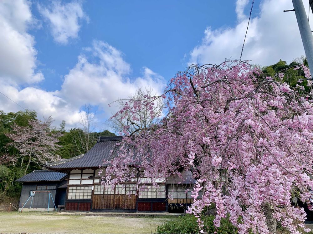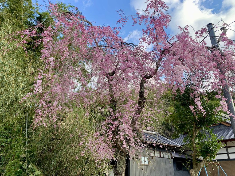 お山のパトロール途中のお寺さんの枝垂れ桜😀お宮さんのしだれ桜😀自宅裏のグミに花が咲いています😀イワヤツデの花😀年々減ってきました😱💦