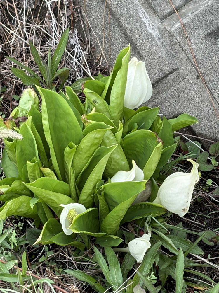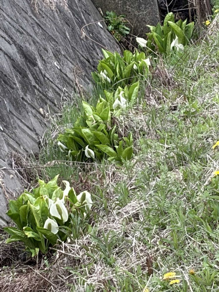 犬と散歩に行く途中の用水路に,水芭蕉が咲いています😊