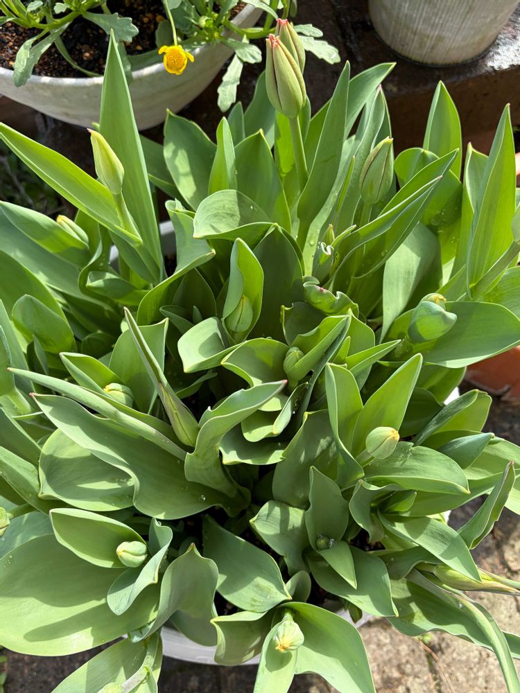秋に30球植えたチューリップ🌷の蕾が出てきました🥰