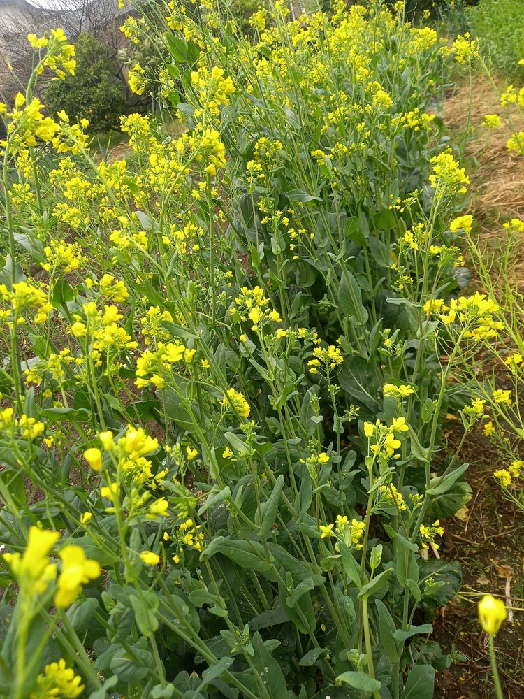 小松菜の菜の花が開く前の蕾の時、摘んで食べたら美味しかったよ😋(*´~`*)ŧ‹"ŧ‹"ŧ‹"