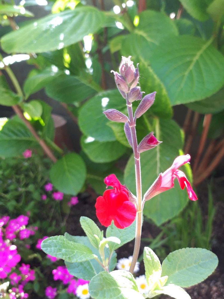 ひとつ咲き始めたチェリーセージ、とっても可愛いですね〜💕