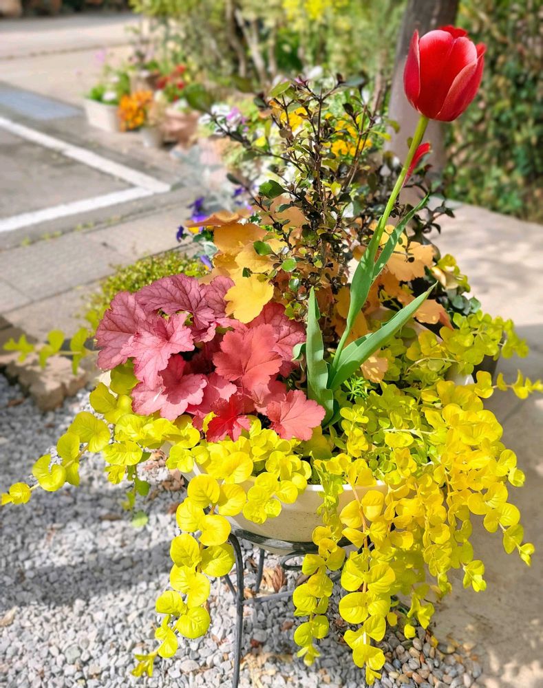 ①暖かくなってリシマキアオーレアの黄色が眩しい✨️