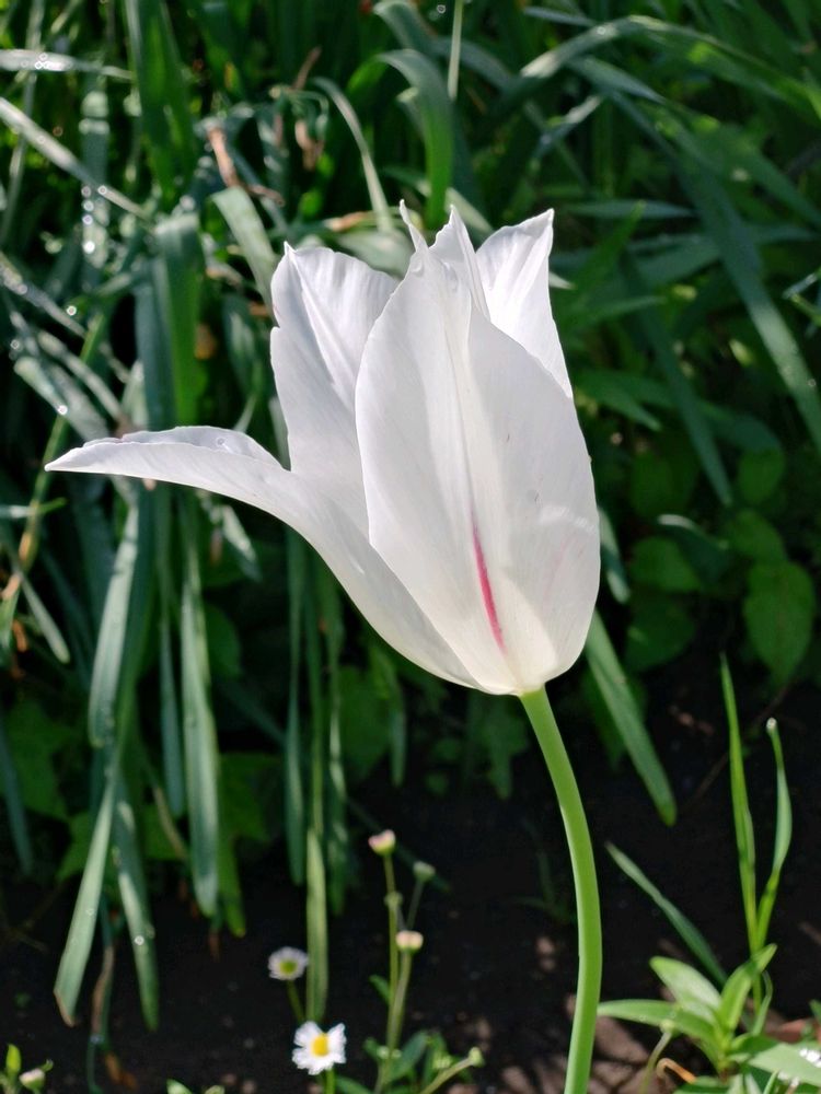 ❹花壇の植えっぱなしの白いチュウリップ🌷