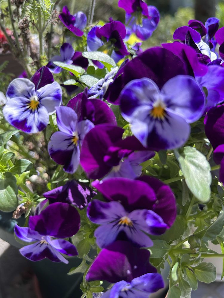 ①ユニークカラービオラさんモリモリ〜お花も随分変化してきました(*ฅ́˘ฅ̀*)♡