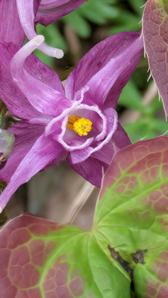 3枚目にあるように、花によっては雌しべが突き出しているので、雄性先熟なのね💛 色の濃いのは蕾で、距はまだ畳まれている🟣