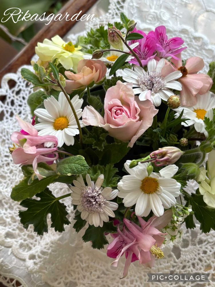 ④⑤早速、ラマリエや庭の花でアレンジしました。