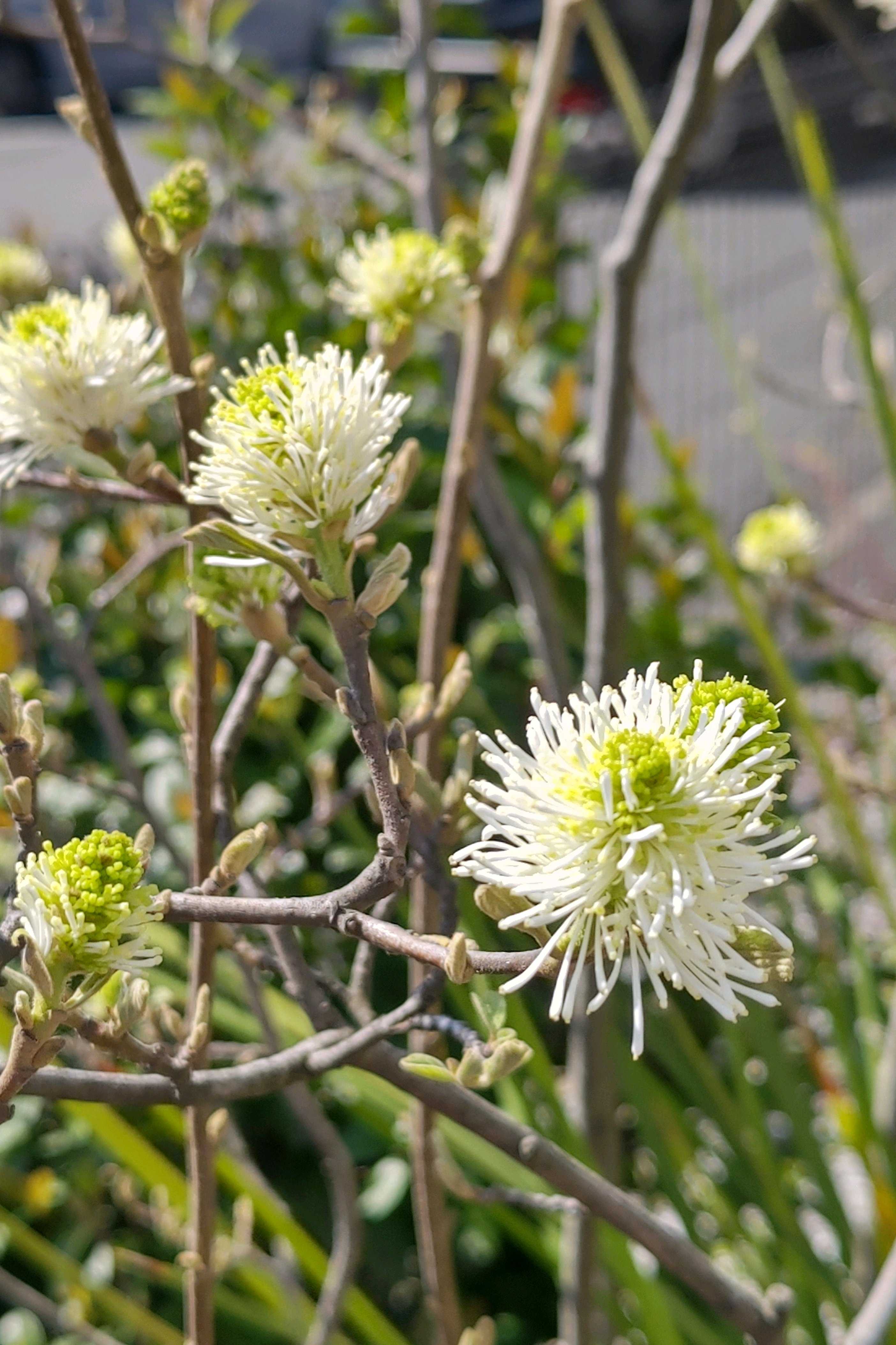 No.767 散歩道の植物とお散歩ちゃん4月③2026/0415 シロバナマンサク、ヒメシャリンバイ、カメリア・エリナカスケード・・・