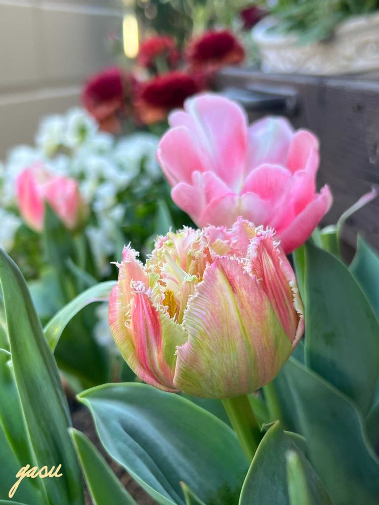 ピンクの八重と一緒に咲いてくれると良かったのにピンクはほぼ終わりです😂