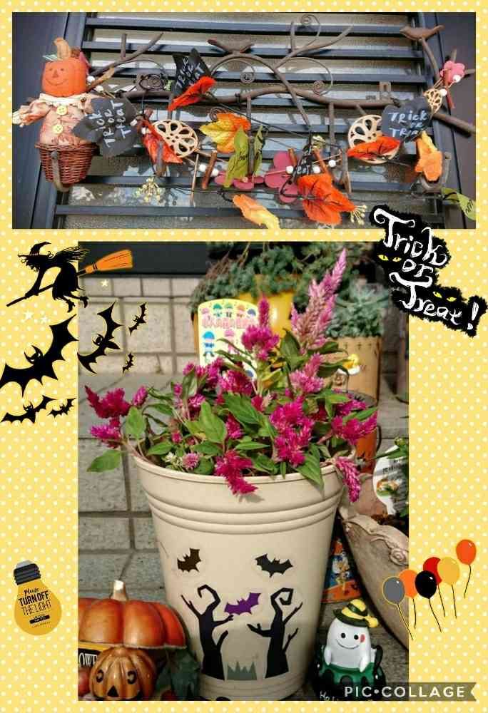 玄関前の小さめのケイトウ森の音楽会をハロウィン🎃に