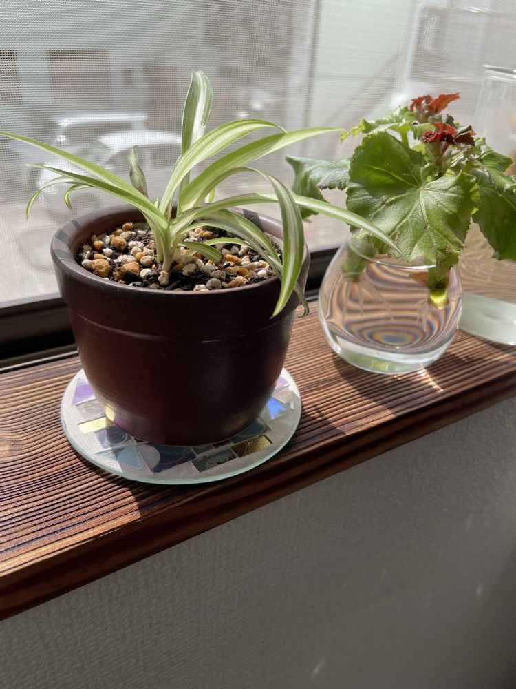 最初はマリモの下に敷こうかと考えていましたが、思いの外キラキラが見えなくなったのでオリヅルランに🧐