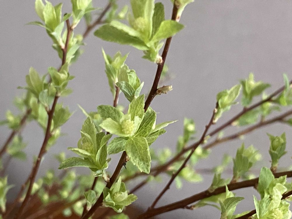 ①庭の葉のない小手毬を剪定して、水差ししていたら蕾が見えて来ました😍