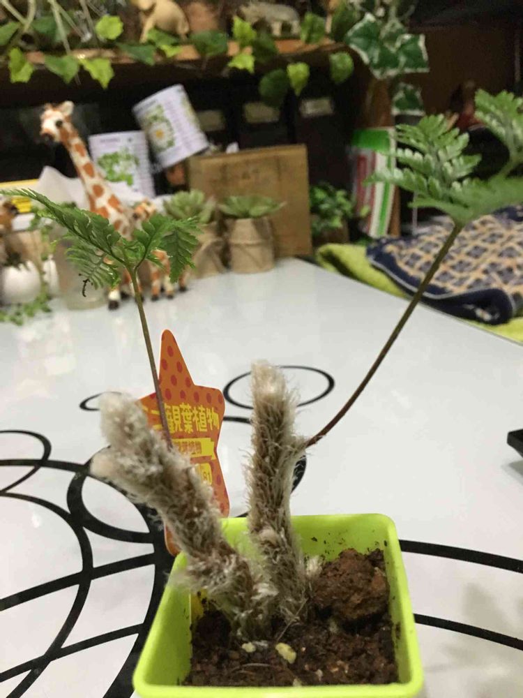 さっき息子の彼女を送ってあげて待ってる時ダイソーよったらもじゃもじゃのところが面白いから連れてきちゃった😁💕もじゃもじゃのところは茎?何?初めて見た😳💕💕