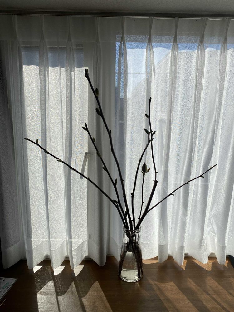 ①先日、蕾の付いているモクレンの剪定枝を友達からもらい、水差ししています💕