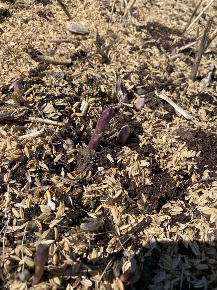 ②畑のアスパラが見え始めました🎶去年の秋に牛糞と籾殻を撒いてます。沢山収穫できるかな😋