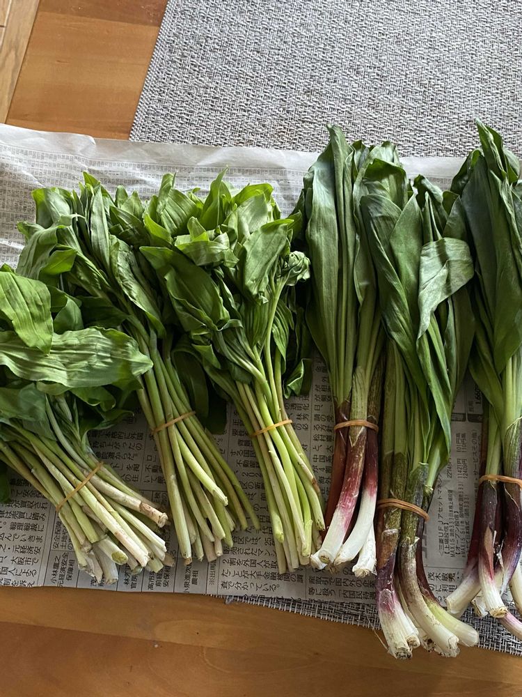 ⑤頂き物の行者ニンニクとあずきな