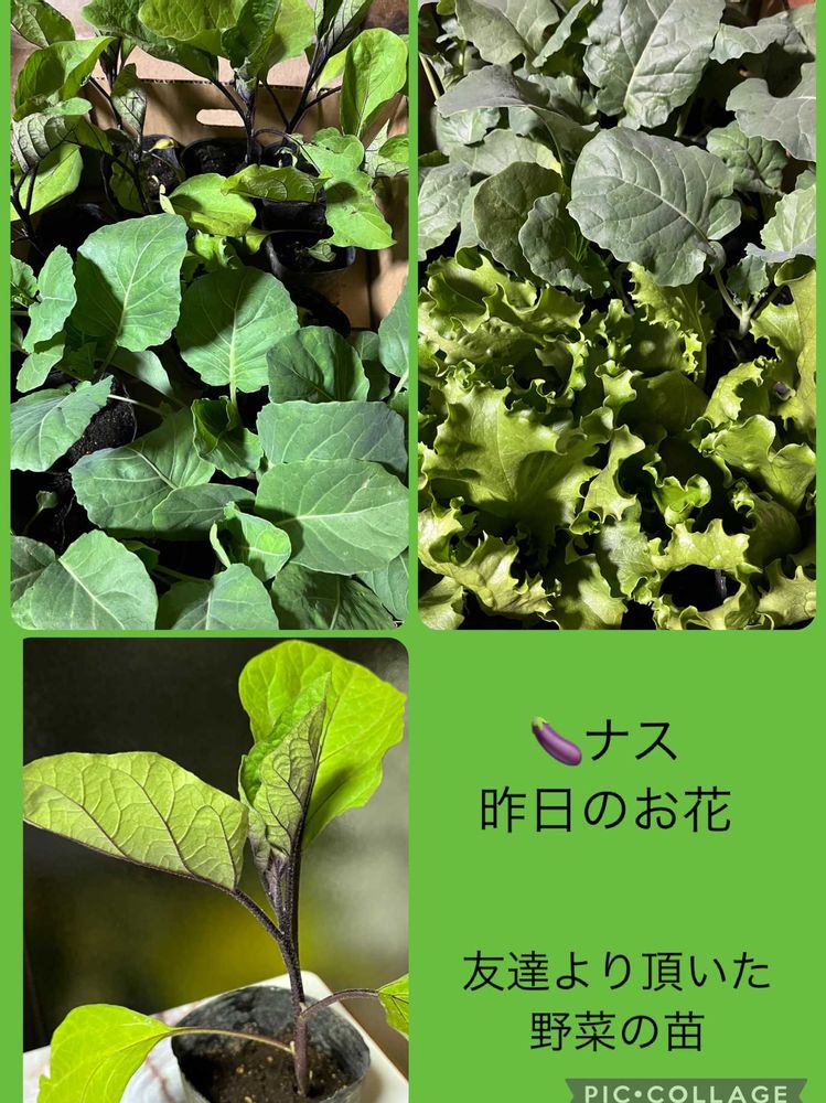 夏野菜の苗は、友達が種から蒔いた野菜の苗です♪とっても立派な綺麗な苗です🤩