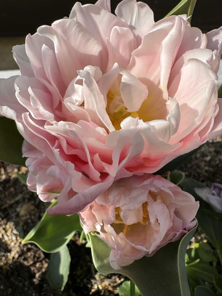 八重のチュ—リップ一つの株に下の方に3〜4コぐらい小さな花が咲いています😊🎶💕