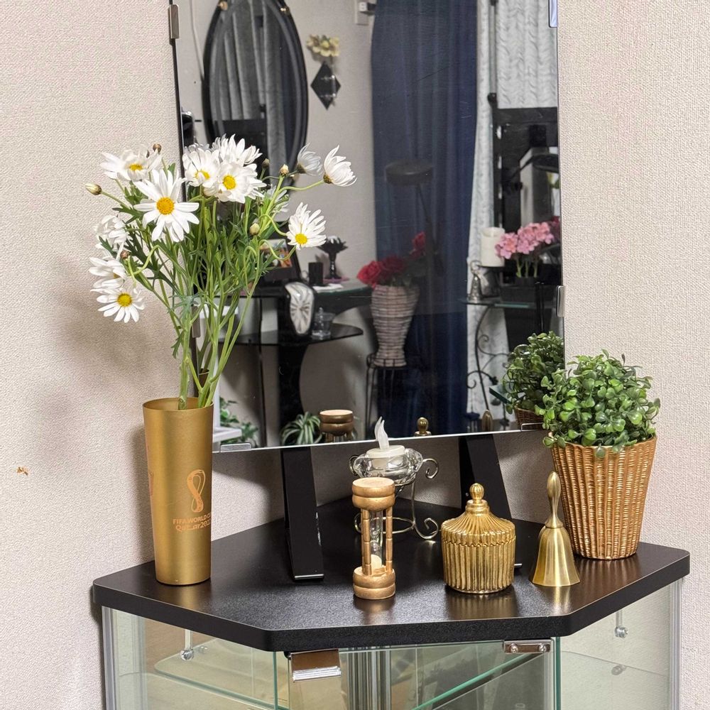 インテリア仏壇「鏡壇ミラリエ」「鏡壇ミロワ」に今日(4/17)の誕生花の「マーガレット(木春菊)」 を飾ってみました。