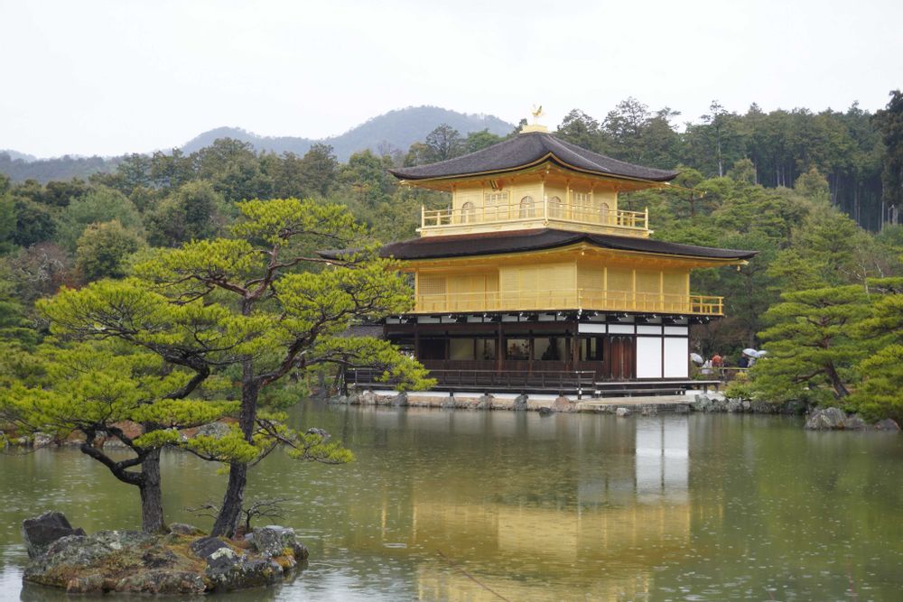 金閣寺舎利殿,水面,雨の日の投稿画像