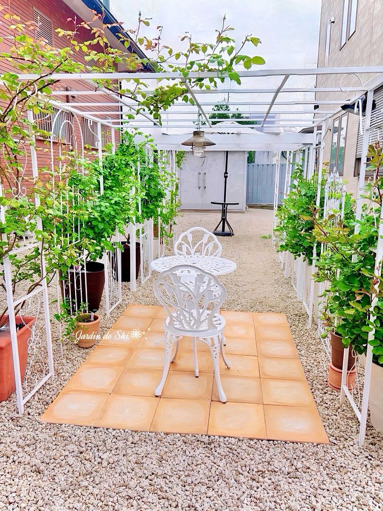あとはパーゴラの下の砂利をまたなんちゃってテラコッタにするか乱張り風にするか迷い中🤔