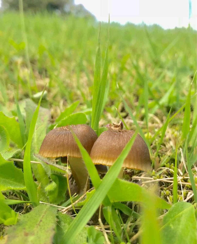 お墓参りにいったら近くの斜面になんか可愛いキノコが生えていた🍄 🍄