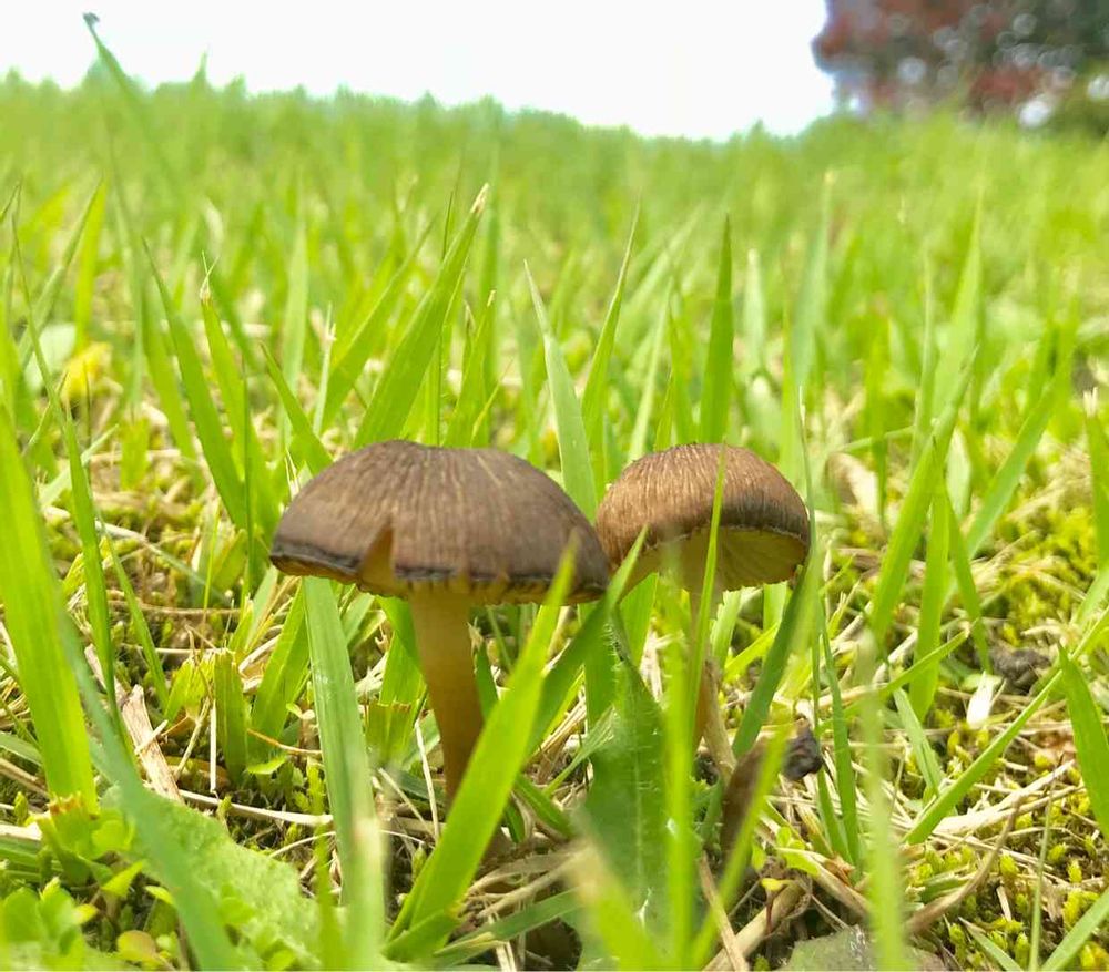 お墓参りに行ったら近くの斜面に可愛いキノコが生えていた🍄 🍄