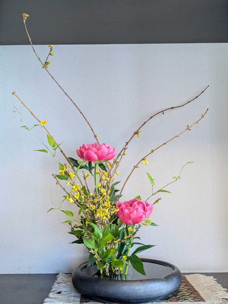 みにこさんのシャクヤク,レンギョウ,いけばなの投稿画像