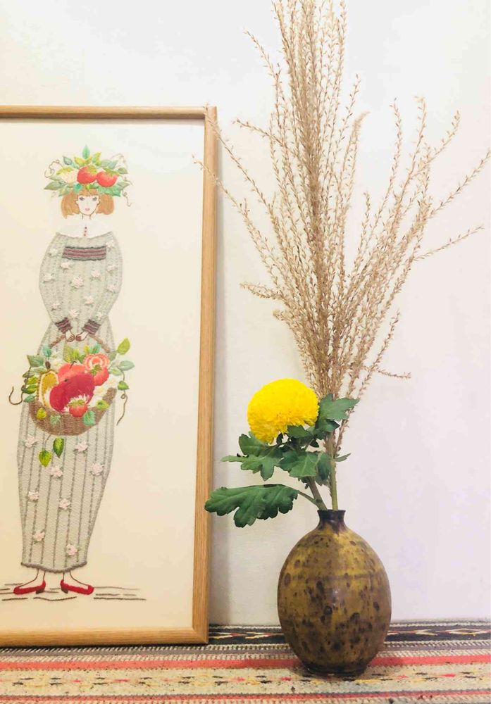 一輪挿しもお花もお姉さんも綺麗ですね😍