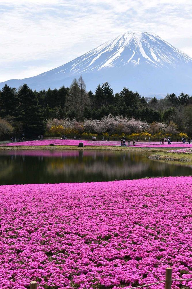 芝桜🌸と富士山、龍神池に映る桜🌸