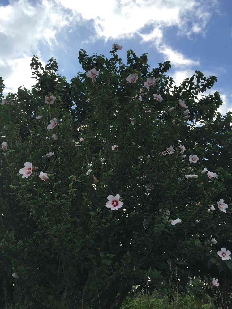 早朝散歩の帰り道、他所のお宅のムクゲの花が咲いてました❣️