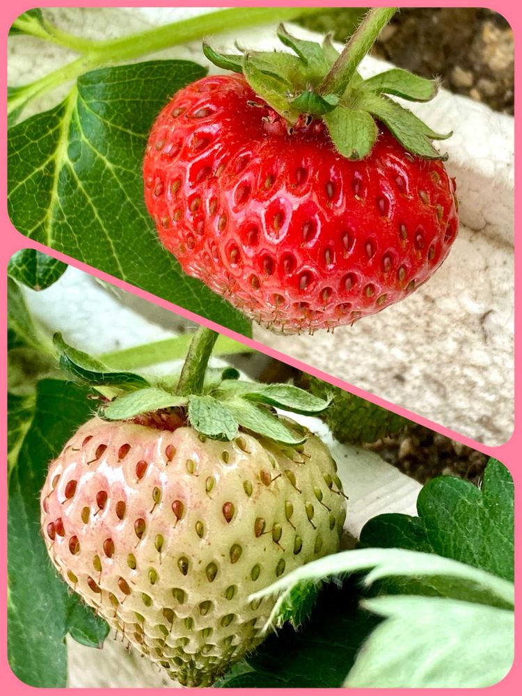 去年、イチゴを1粒だけ果肉を乾燥させて粒々を取り出して埋めてから約1年…