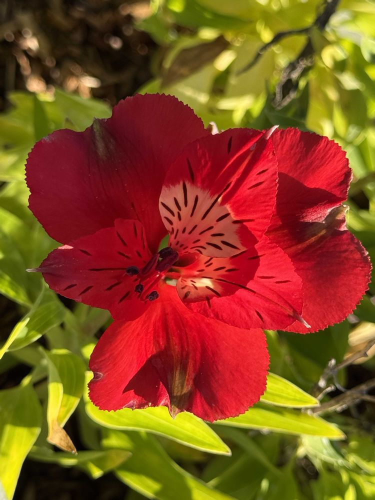 Alstroemeria hybrida/Alstroemeria Alstroemeriaceae. Liliales. Liliopsida. Tracheophyta Commonly called/Peruvian lilies. Parrot Lily Native to/South America (Chile. Brazil. Peru) Symbolism/Friendship. Devotion. *The flower is often associated with friendship and devotion, with its leaves twisting on the stem to represent the twists in a growing friendship. *Red colored Alstromeria/ Deep love and passion *Genus of about 50 species of perennials *Summer-flowering tuber with narrow twisted leaves and heads of widely flared flowers. High/1.1/2-2ft(45-50cm). Size/2-3ft(60cm-1m) *Baron Clas Alstromer(1736-1796),discovered the flower during his travels to South America in 1750s. Photographed 4/18 9:07am 2026 Posted 4/20(Monday) 12:23pm 2026